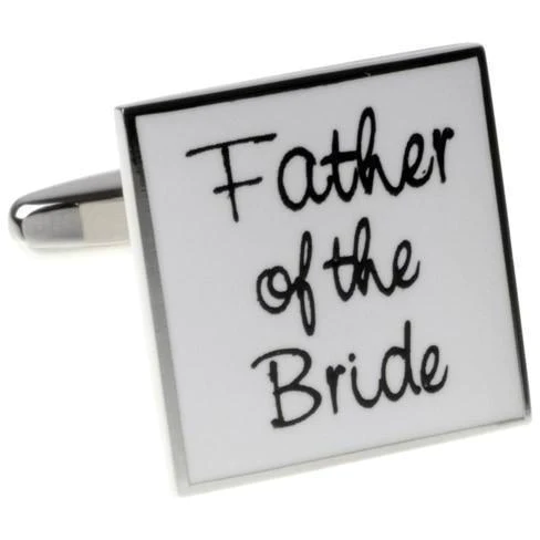 Comes in a stylish gift boxThese cufflinks will look great on your wedding party, Made from white enamel and printed with the text 'Father of The Bride' in black. These cufflinks come in a luxury presentation box, and are a great gift to show the father of the bride what an important part of the wedding he is!